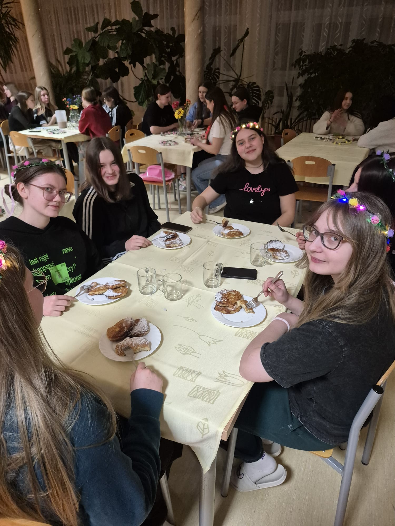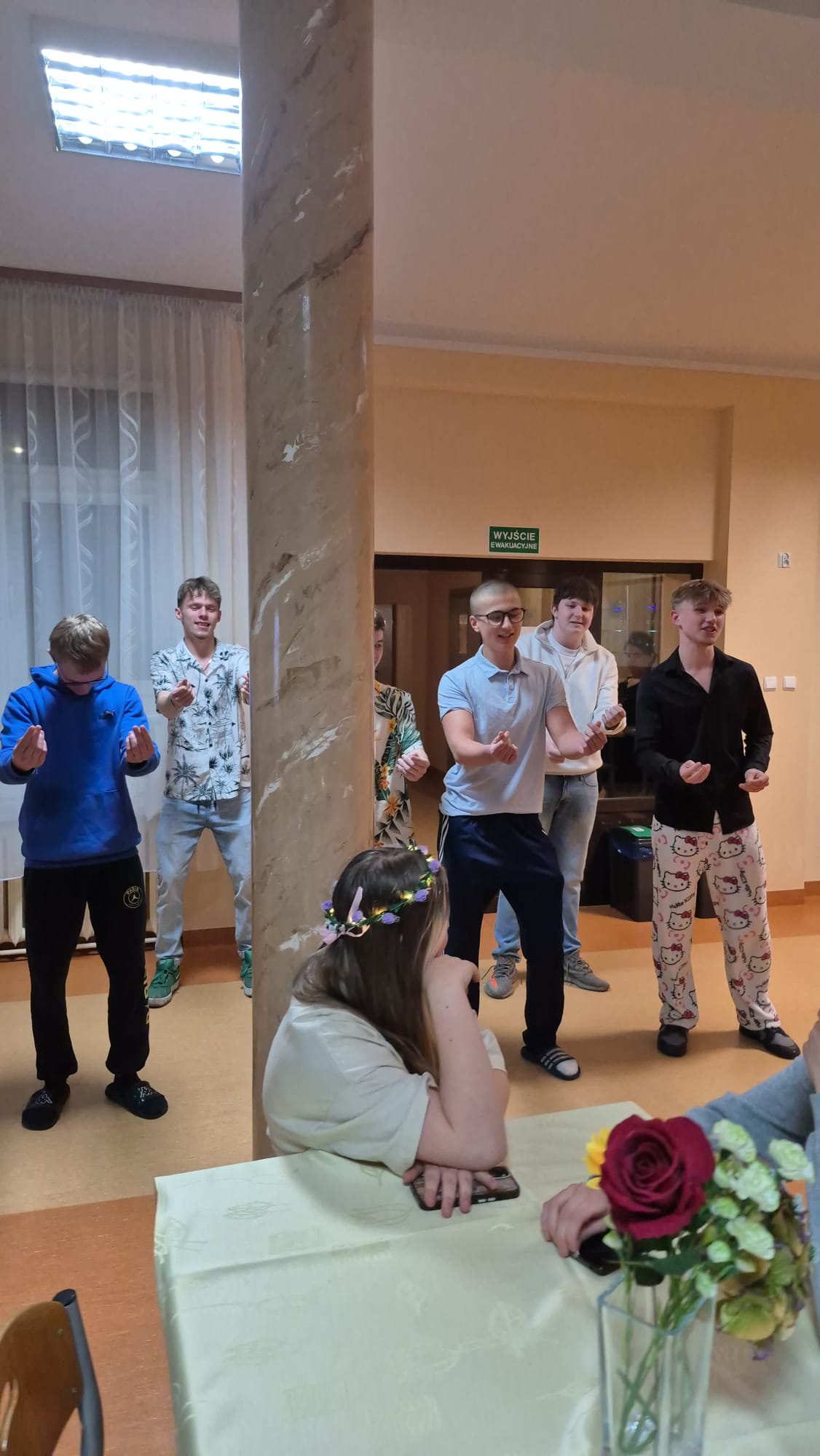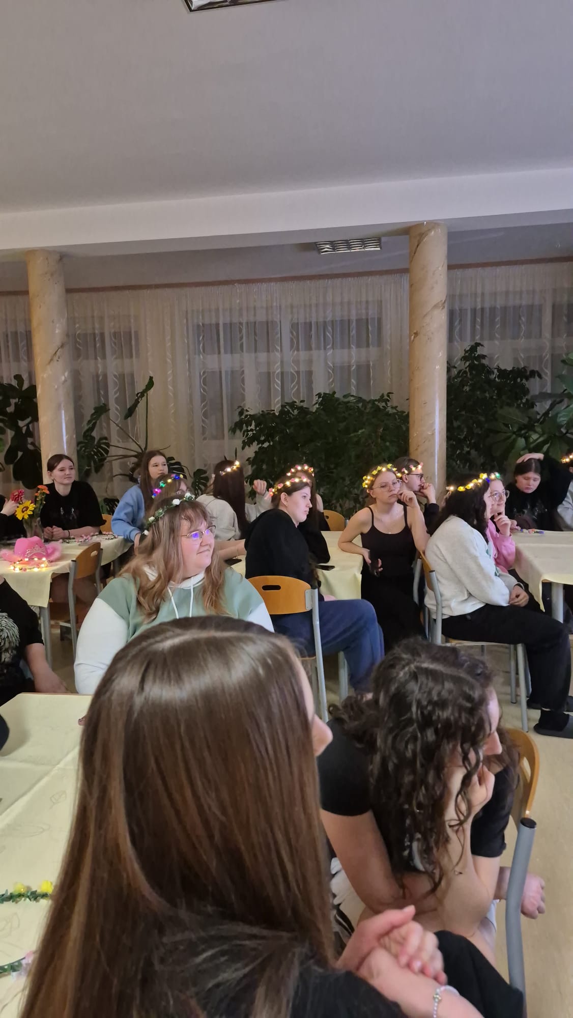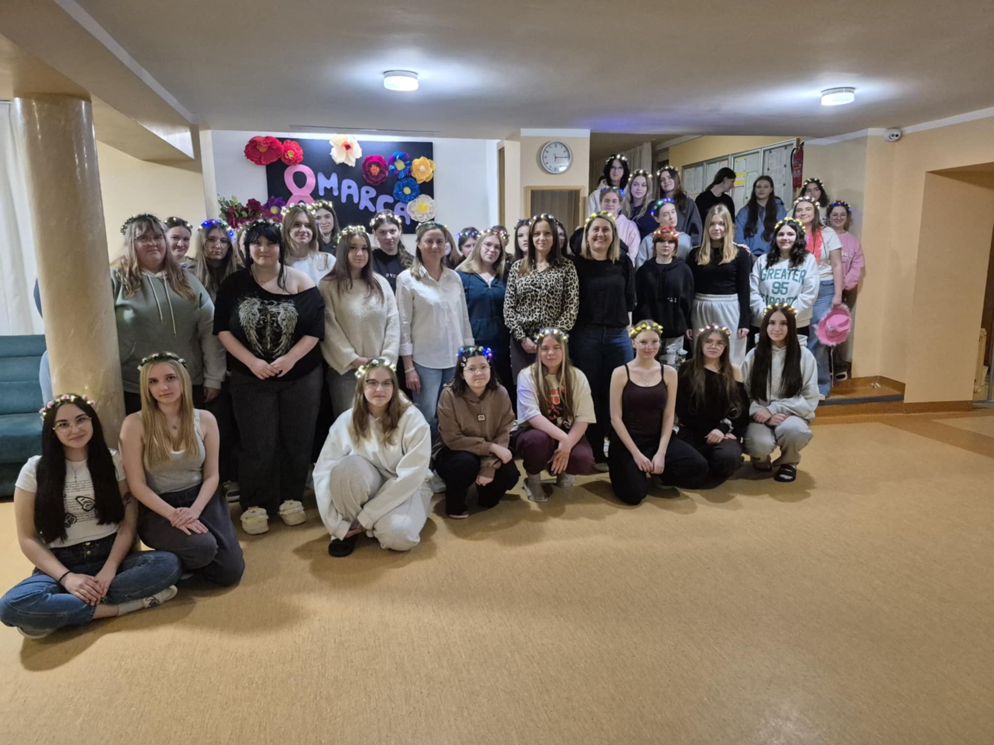 Łukasz Kot, przewodniczący samorządu internatu złożył koleżankom życzenia z okazji ich święta oraz podziękował za ich obecność i przyjaźń. Chłopcy wręczyli dziewczętom słodycze oraz okolicznościowy prezent, w tym roku były to wiosenne wianki. Jak zwykle wieczór uatrakcyjnił ciekawy konkurs. Dziewczęta miały za zadanie odgadnąć markę samochodu po wyświetlonym na ekranie symbolu. Poradziły sobie oczywiście świetnie, rozszyfrowały nawet najbardziej egzotyczne znaki.