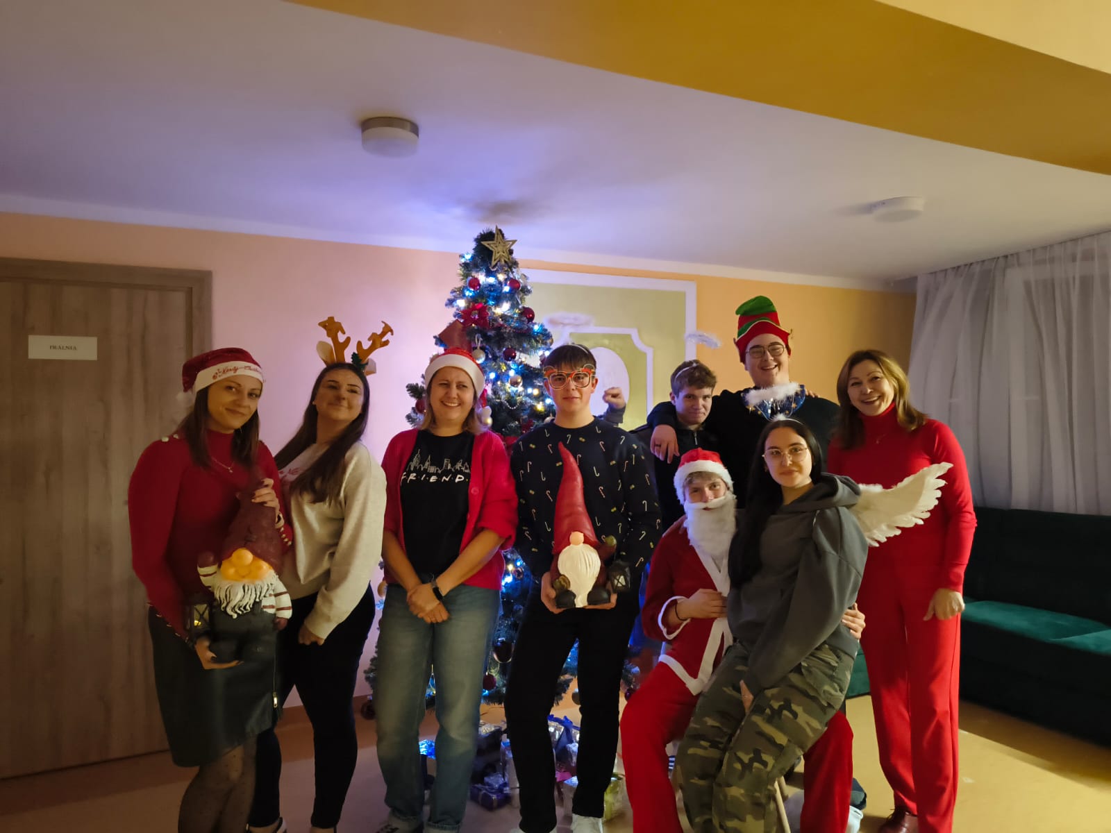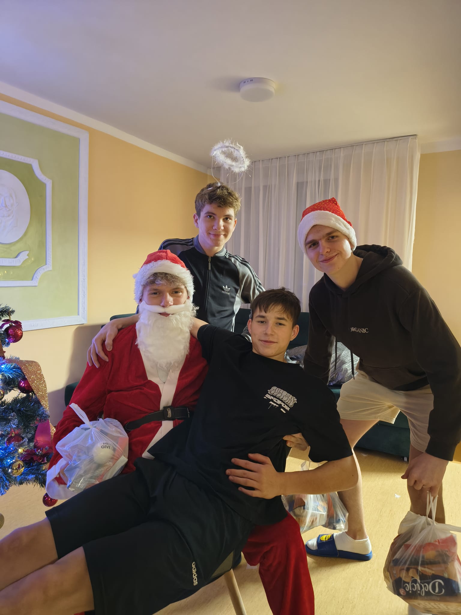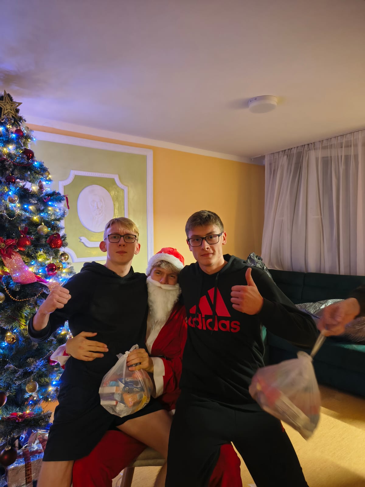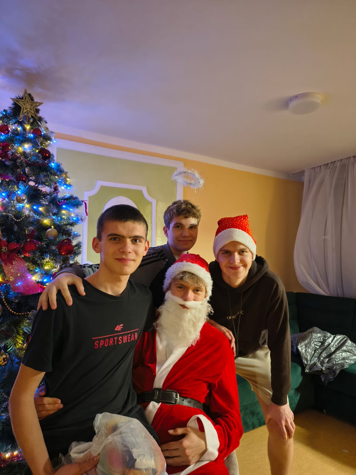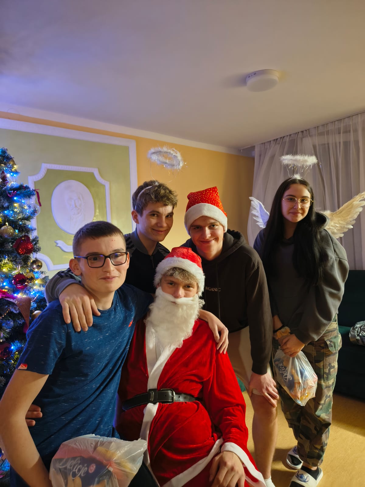 Mikołajki, święto wszystkich grzecznych dzieci, rozpoczynają świąteczny czas. W tym roku miły gość w czerwonym stroju i z workiem pełnym prezentów odwiedził internat już 4 grudnia wieczorem. Przy choince i dźwiękach świątecznych przebojów podopieczni zostali obdarowani słodyczami i drobnymi upominkami. Aby otrzymać prezent, każdy uczeń musiał odpowiedzieć na pytanie związane z tradycjami Bożego Narodzenia. Na szczęście wszystkim się udało, a że spełniali również drugi warunek – dobrego sprawowania w kończącym się roku – każdy z mieszkańców wrócił do pokoju z podarunkiem. Uścisk Mikołaja i wspólne zdjęcie były dodatkowymi atrakcjami wieczoru.