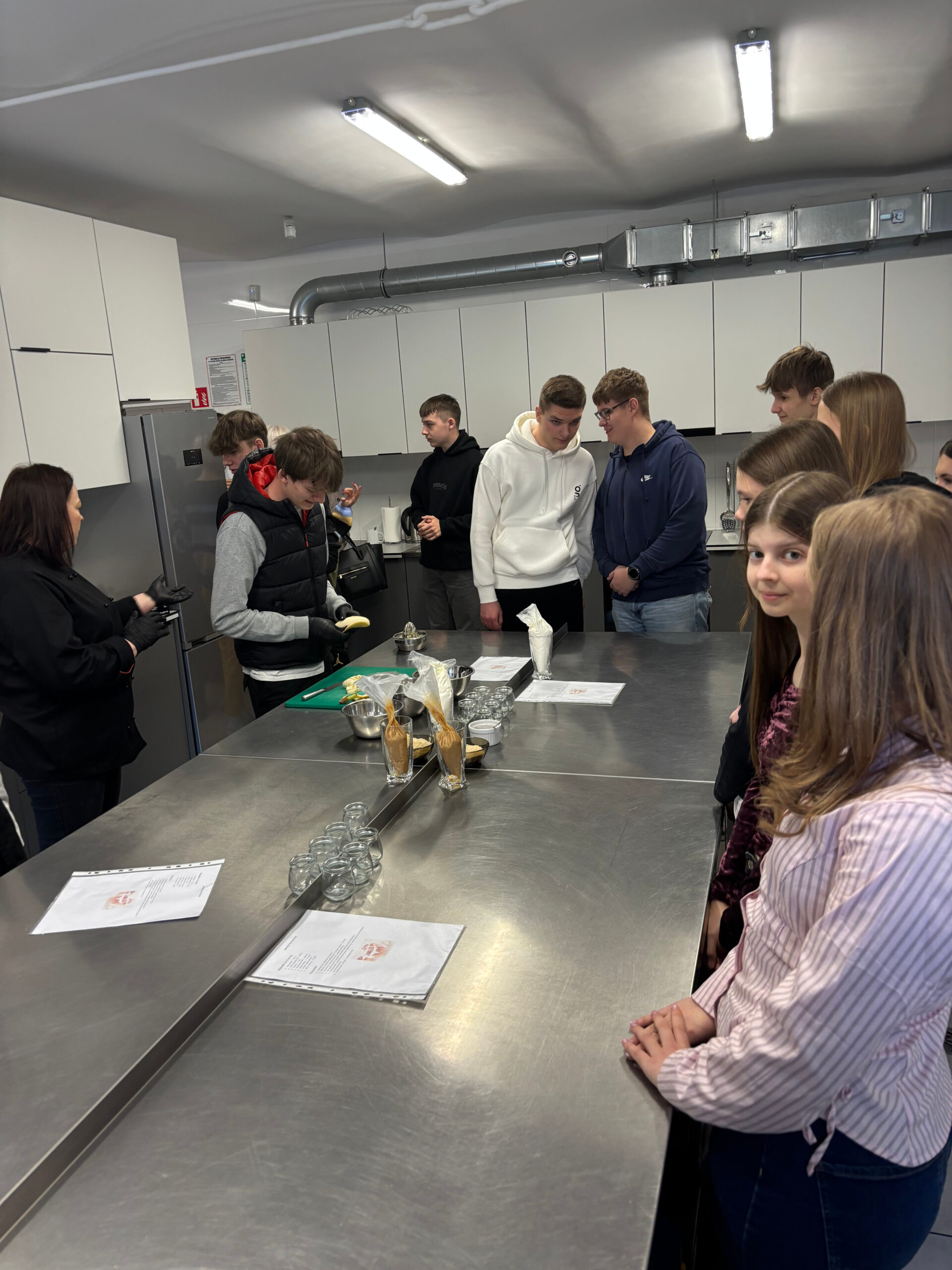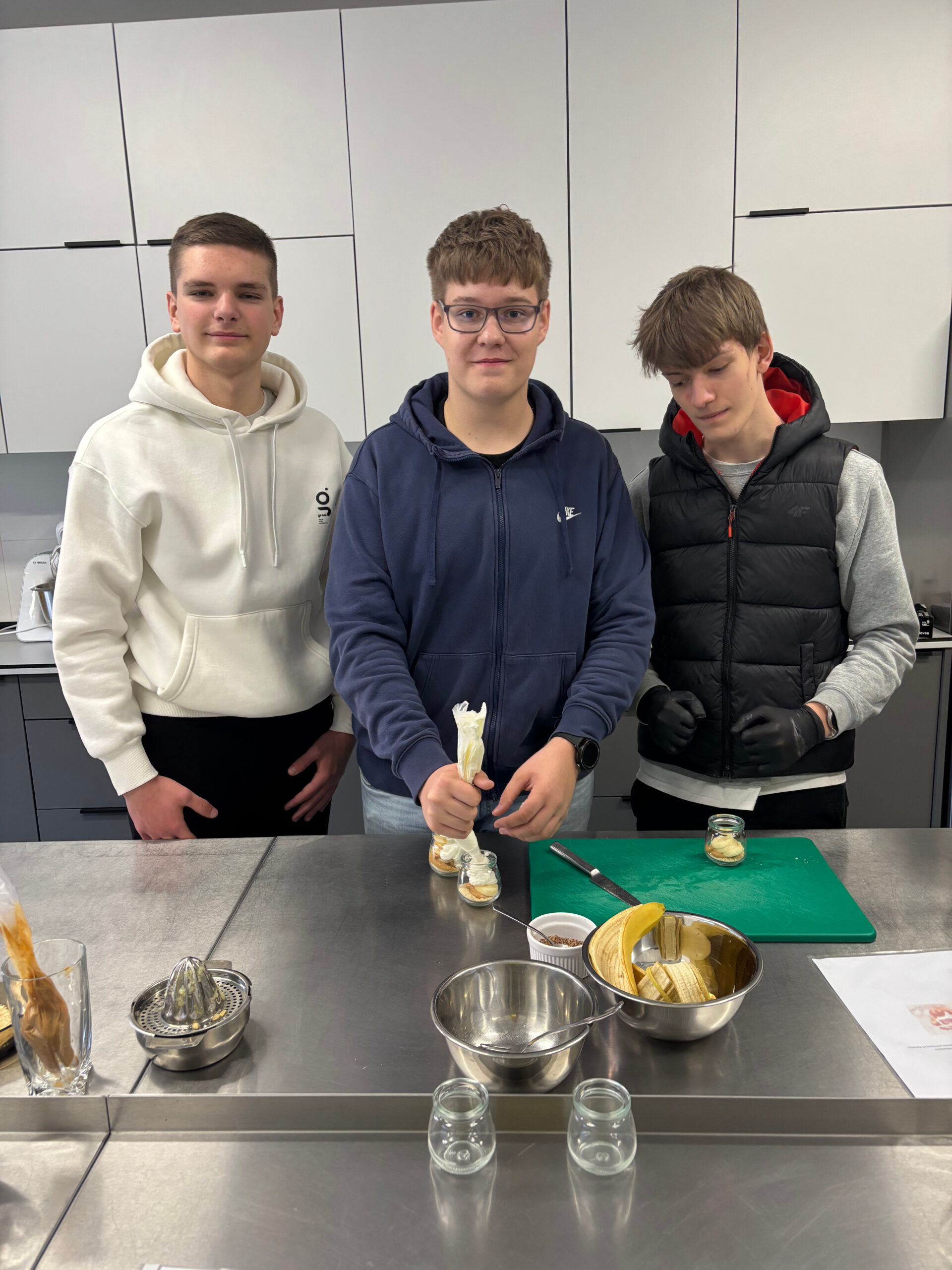 Nie zabrakło również atrakcji dla miłośników kulinariów. Podczas zajęć na kierunku technik żywienia i usług gastronomicznych uczniowie przygotowywali popularny deser Banoffee. Warsztaty te pozwoliły im nie tylko nauczyć się nowych umiejętności kulinarnych, ale także przekonać się, jak wygląda praca w gastronomii.