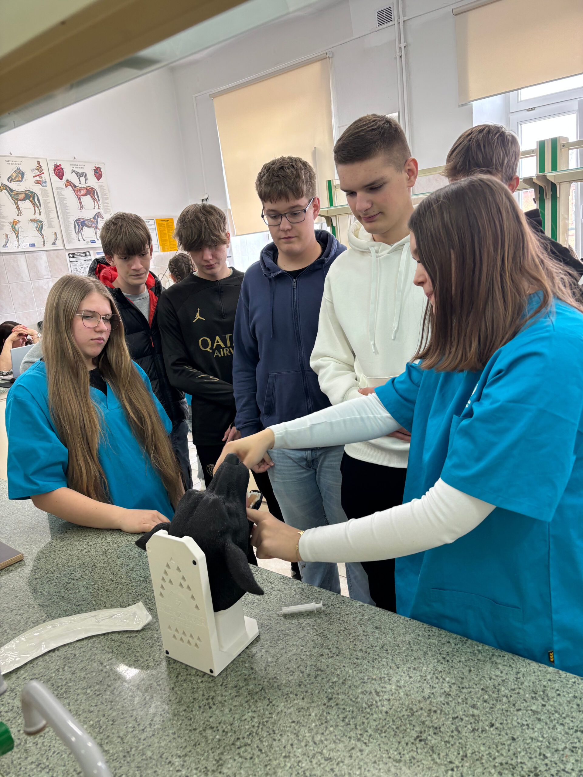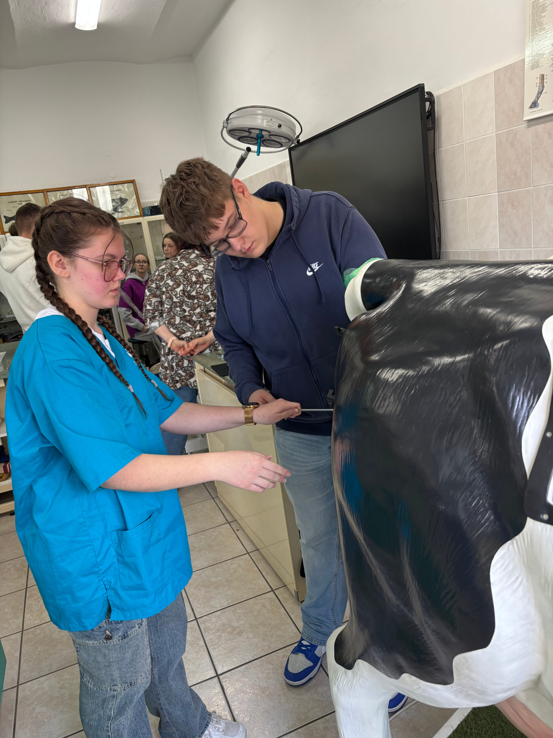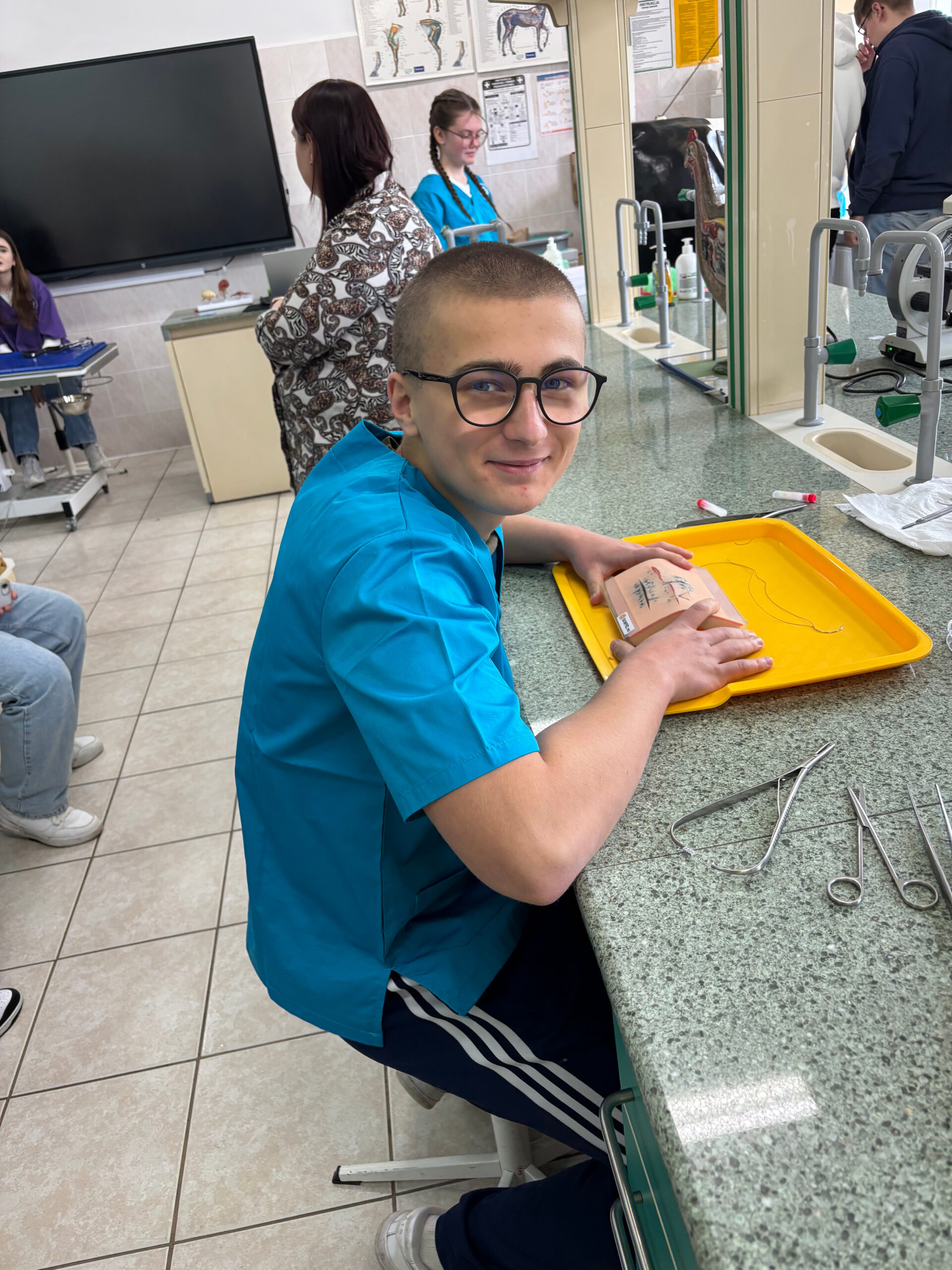 Jednym z największych zainteresowań cieszyły się zajęcia na kierunku technik weterynarii. Ósmoklasiści mogli zobaczyć, jak wygląda badanie USG u zwierząt, a także spróbować swoich sił w takich czynnościach jak inseminacja, intubacja, pobieranie krwi czy szycie łap na fantomach. Zajęcia te pozwoliły im poczuć się jak prawdziwi specjaliści i zrozumieć, jak odpowiedzialna jest praca ze zwierzętami.