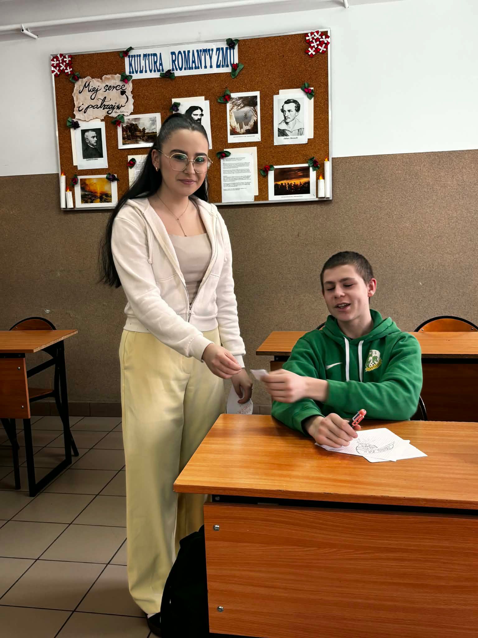 Moment roznoszenia poczty w klasach był najbardziej wyczekiwanym punktem dnia i dostarczył nam wszystkim mnóstwo pozytywnych emocji. Tego dnia zadbaliśmy nie tylko o korespondencję, ale również o odpowiedni nastrój. Podczas przerw przedstawiciele Samorządu Uczniowskiego umilali czas, serwując romantyczną muzykę z radiowęzła szkolnego. Największe miłosne przeboje i klimatyczne ballady sprawiły, że czas oczekiwania na lekcje stał się znacznie przyjemniejszy, a na korytarzach zapanował wyjątkowy, walentynkowy klimat.
