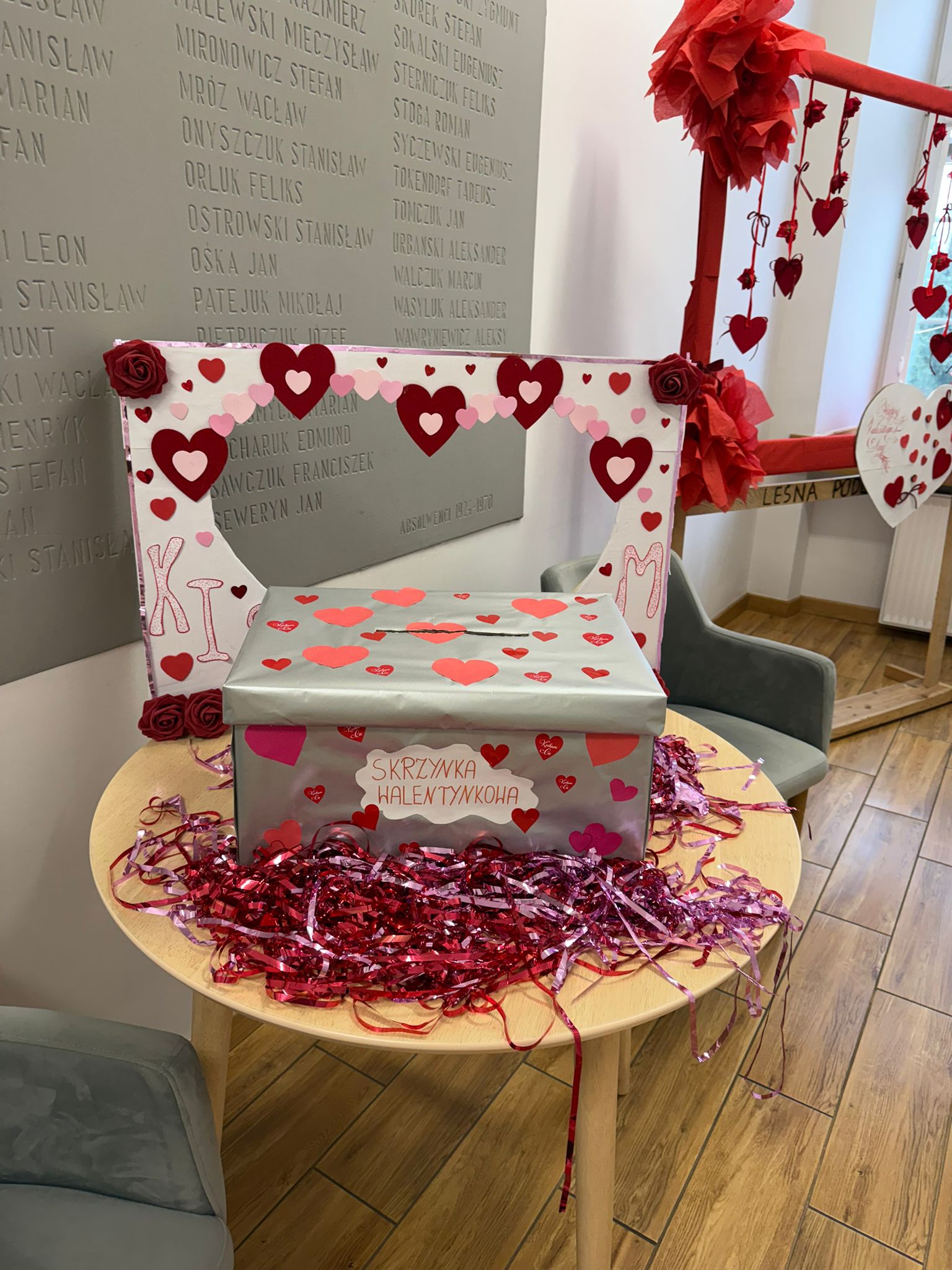 Przez cały tydzień na szkolnym korytarzu czekała specjalnie ozdobiona skrzynka, do której uczniowie, nauczyciele i pracownicy wrzucali własnoręcznie przygotowane kartki, liściki i dowody sympatii. Byliśmy pod wrażeniem pomysłowości – wiele kartek zostało wykonanych ręcznie, z dbałością o najmniejsze detale. Uczniowie Technikum w zawodzie technik architektury krajobrazu zadbali o wyjątkowo magiczną scenerię.