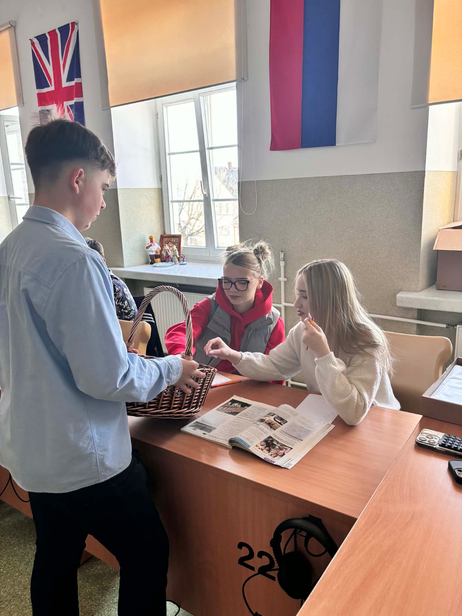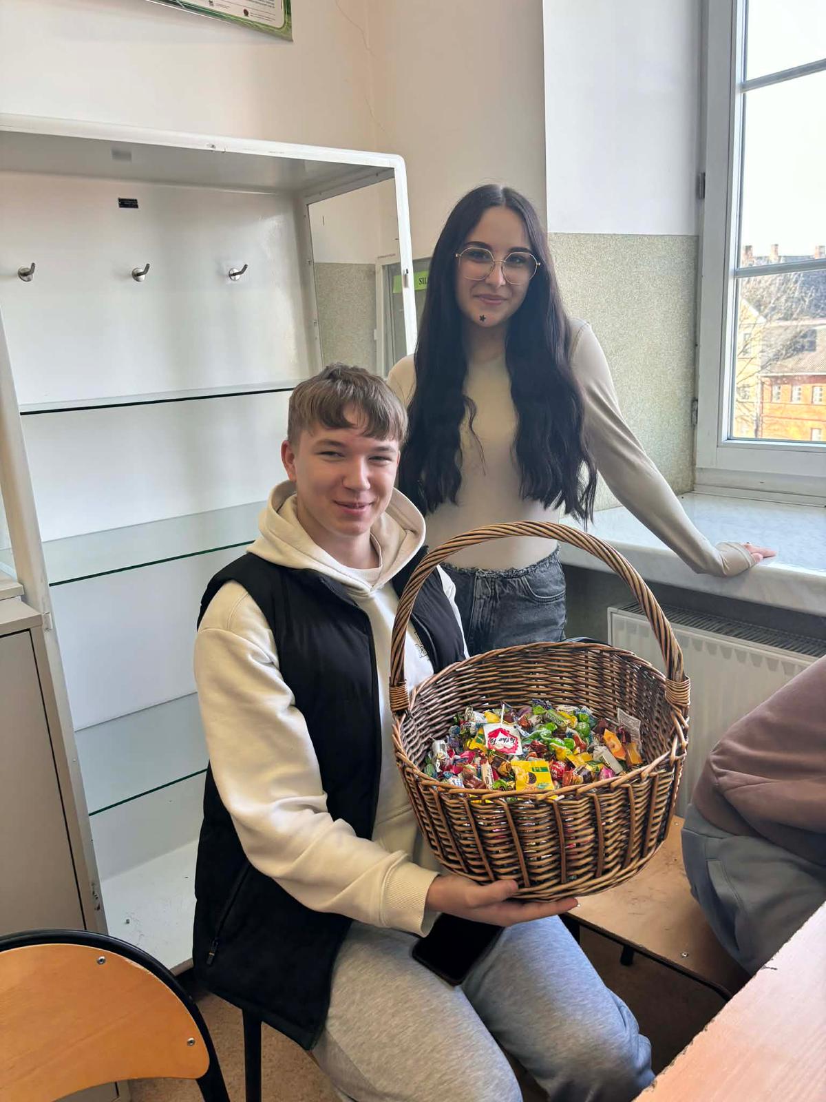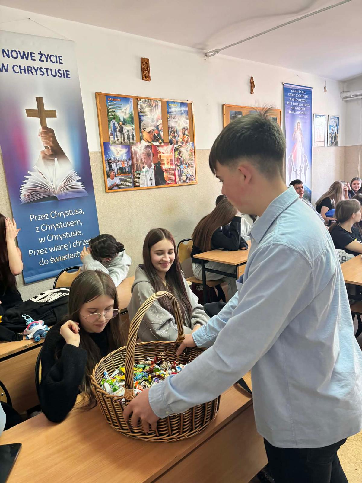 i pracownikom szkoły. Każdy mógł poczuć się wyjątkowo otrzymując miły uśmiech, dobre słowo i słodki upominek. Była to doskonała okazja, aby zatrzymać się na chwilę w codziennym szkolnym zabieganiu i spędzić czas w miłej, życzliwej atmosferze. Takie gesty przypominają nam, jak ważne są wzajemny szacunek, życzliwość i integracja całej społeczności szkolnej.