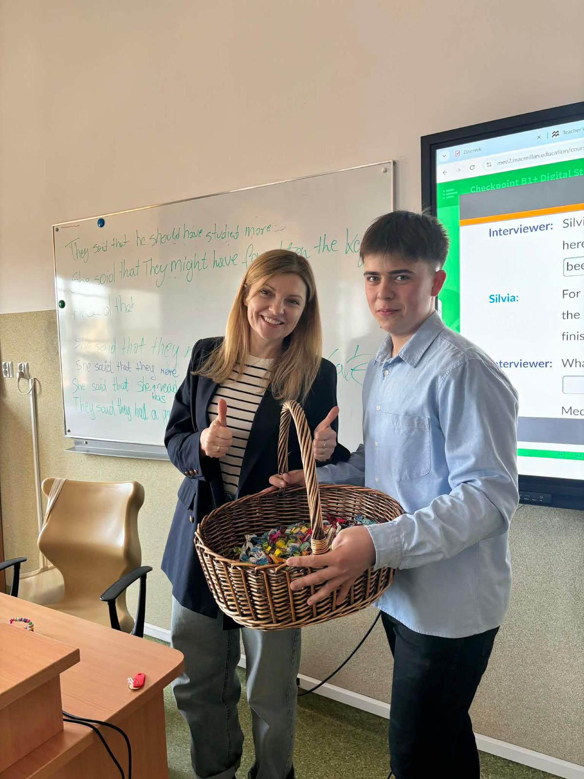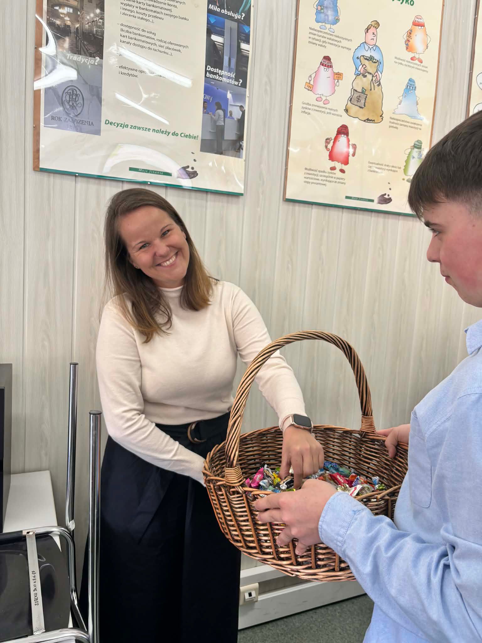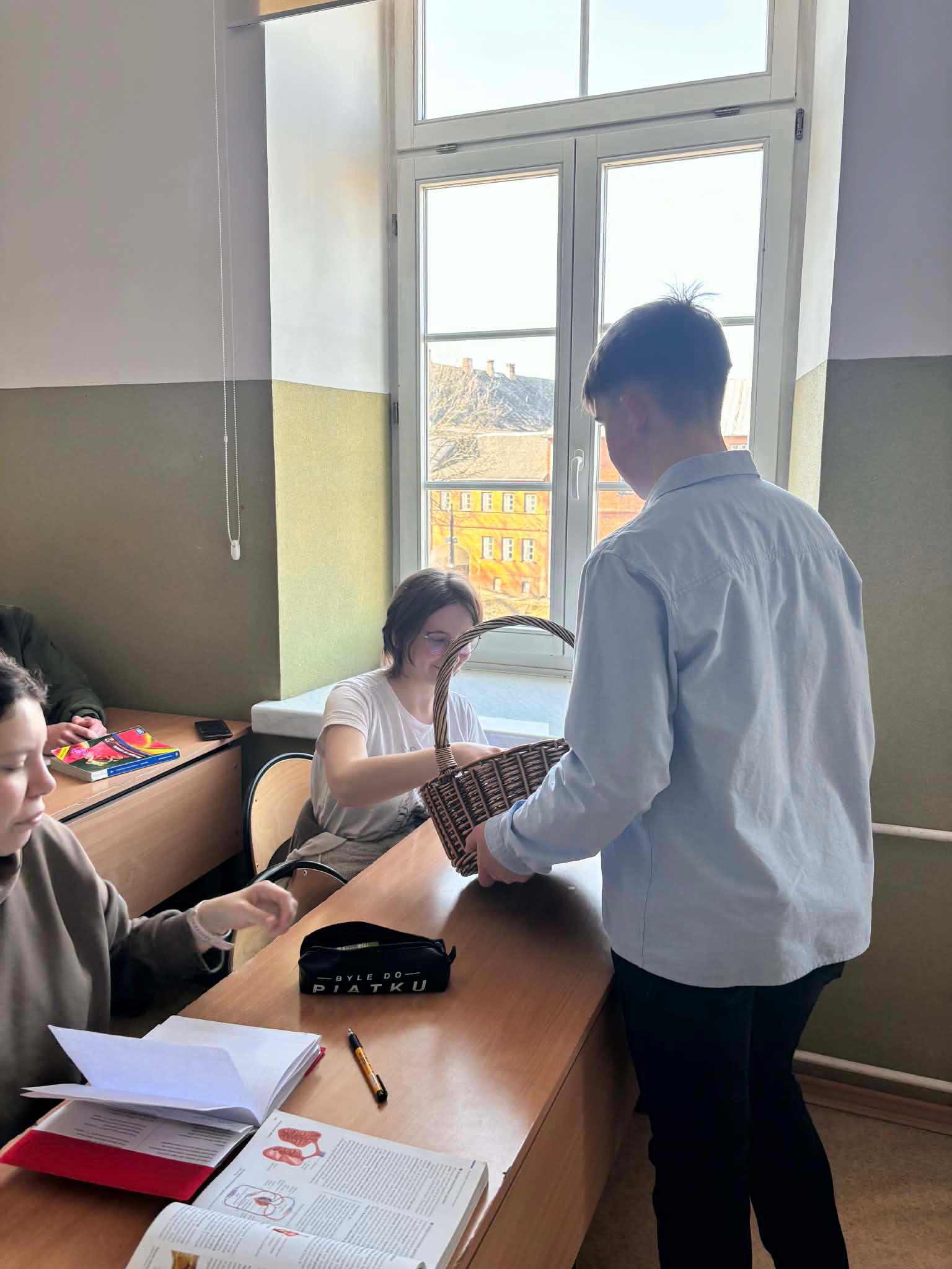i pracownikom szkoły. Każdy mógł poczuć się wyjątkowo otrzymując miły uśmiech, dobre słowo i słodki upominek. Była to doskonała okazja, aby zatrzymać się na chwilę w codziennym szkolnym zabieganiu i spędzić czas w miłej, życzliwej atmosferze. Takie gesty przypominają nam, jak ważne są wzajemny szacunek, życzliwość i integracja całej społeczności szkolnej.