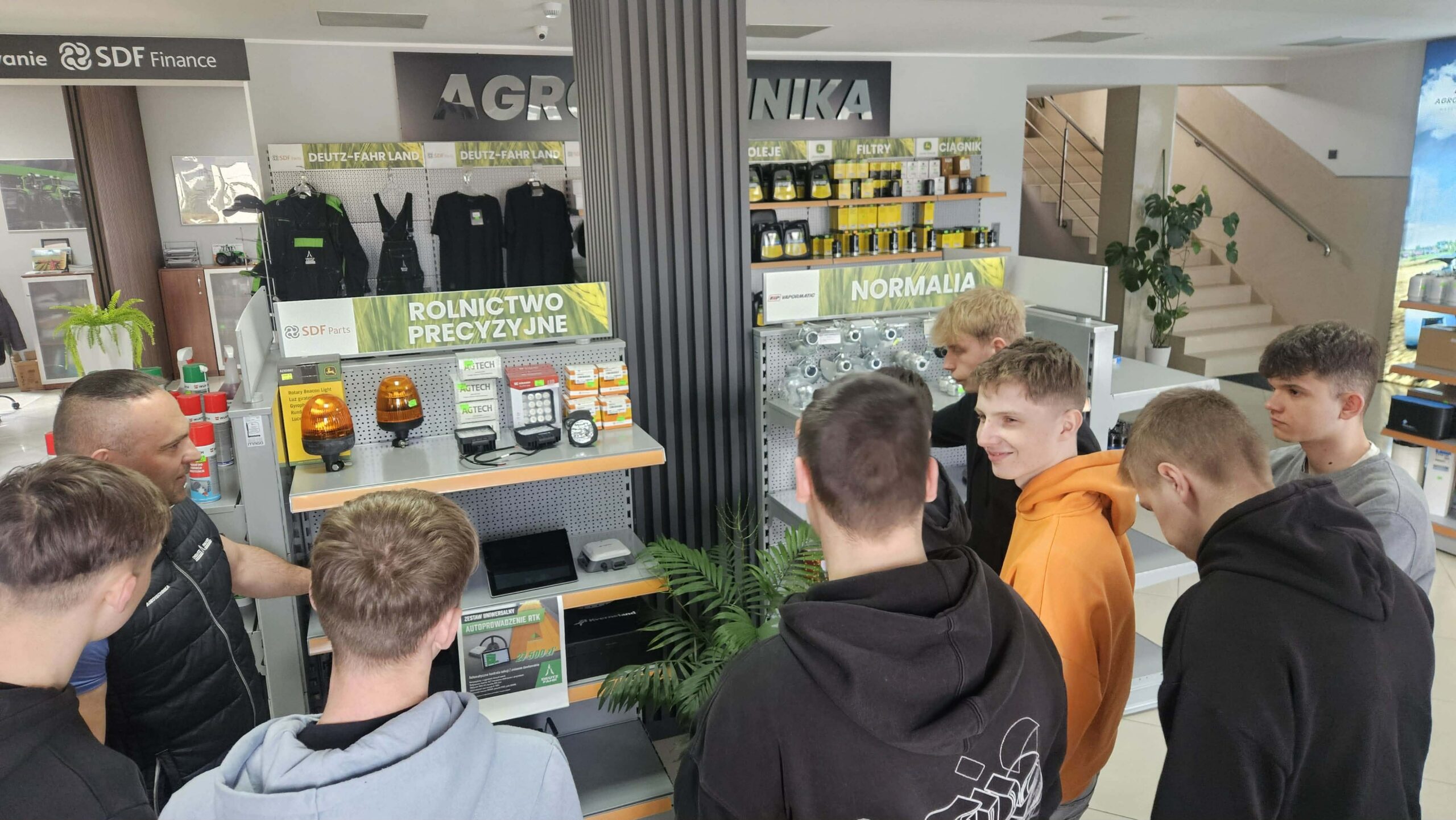 Uczniowie mieli także okazję odwiedzić firmę Agrotechnika w Ciciborze Dużym, gdzie zapoznali się z nowoczesnym parkiem maszynowym oraz organizacją pracy w przedsiębiorstwie z branży rolniczej. Podczas wizyty mogli zobaczyć maszyny z bliska, poznać innowacyjne rozwiązania technologiczne oraz dowiedzieć się, jak wygląda codzienna praca w sektorze agrotechnicznym.