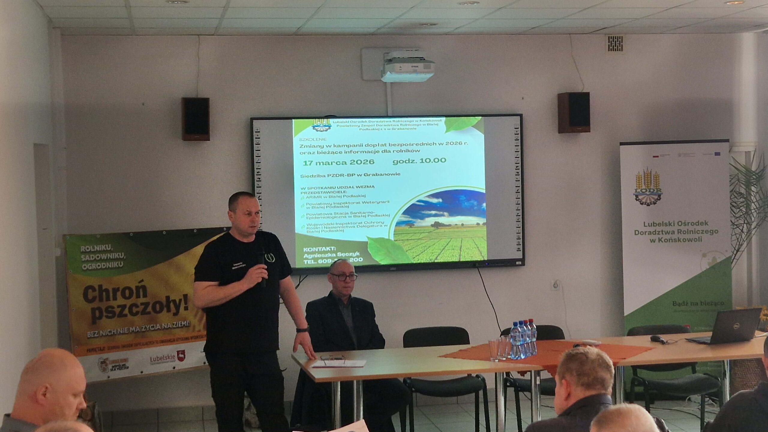 W dniu 17 marca 2026 r. uczniowie klasy III technikum w zawodzie technik mechanizacji rolnictwa i agrotechniki z Zespół Szkół Centrum Kształcenia Rolniczego w Leśnej Podlaskiej uczestniczyli w specjalistycznym szkoleniu pt. „Zmiany w kampanii dopłat bezpośrednich w 2026 r. oraz bieżące informacje dla rolników”. Wydarzenie zostało zorganizowane przez Lubelski Ośrodek Doradztwa Rolniczego w Końskowoli – Powiatowy Zespół Doradztwa Rolniczego w Białej Podlaskiej z siedzibą w Grabanowie.