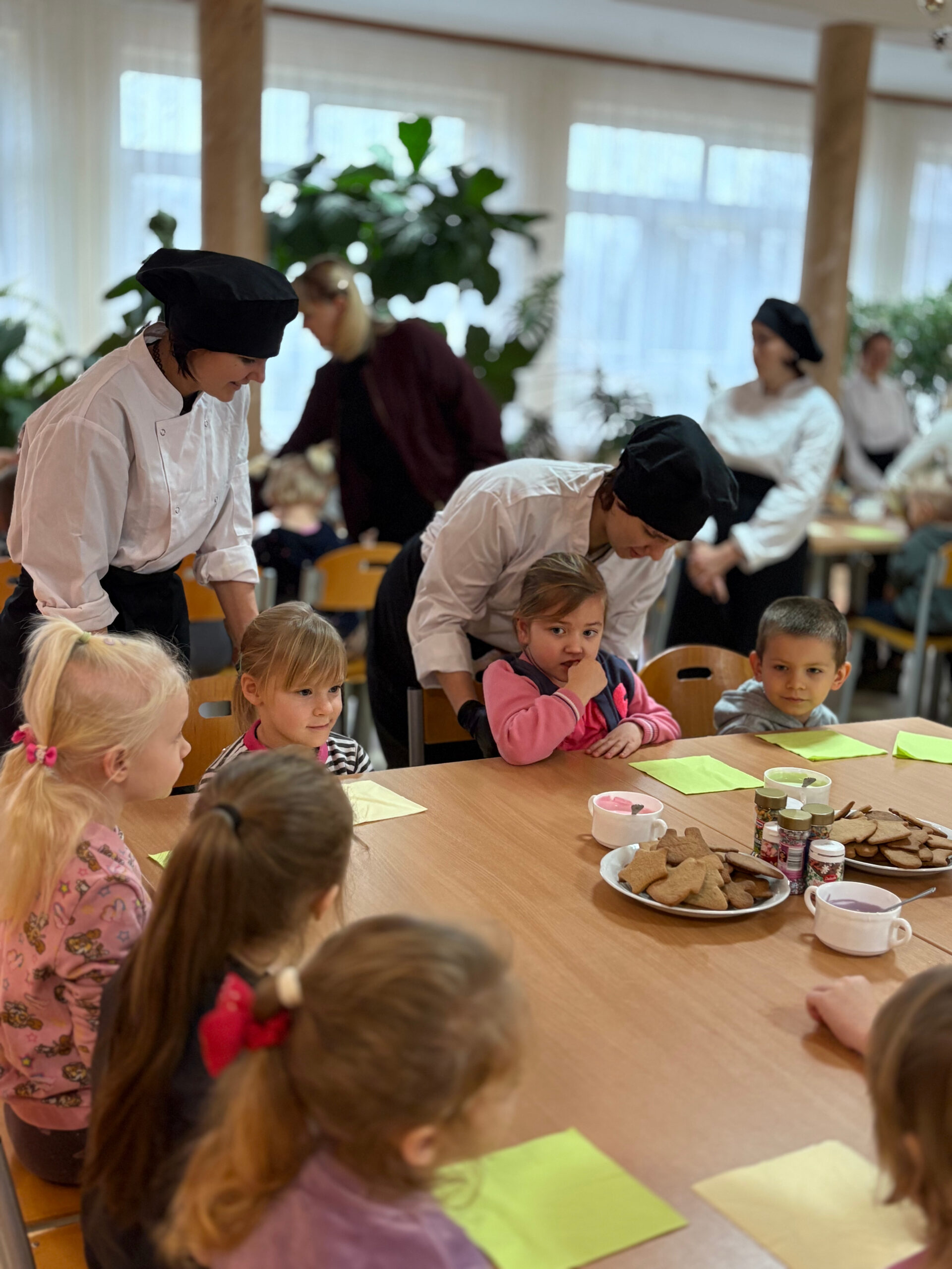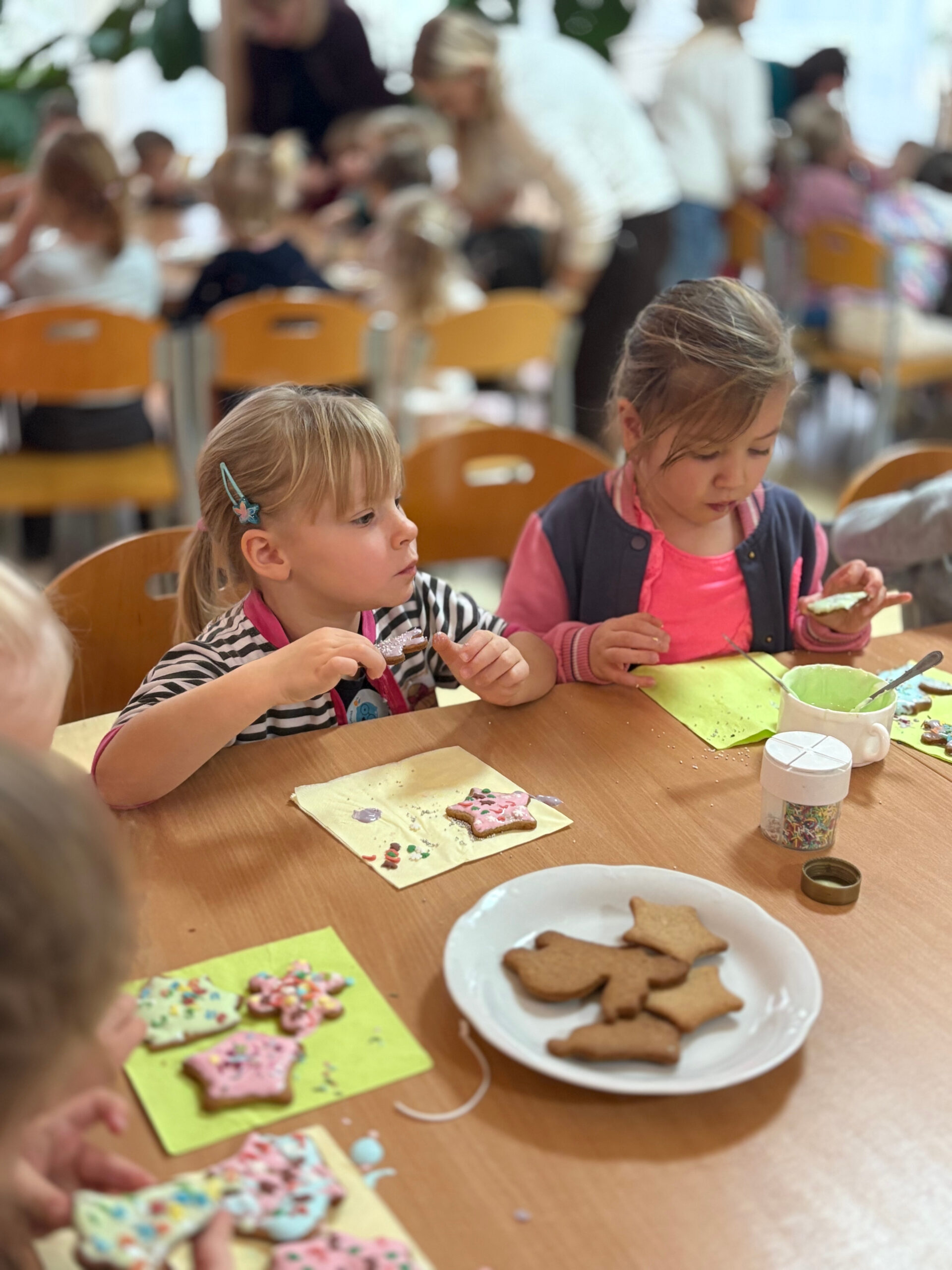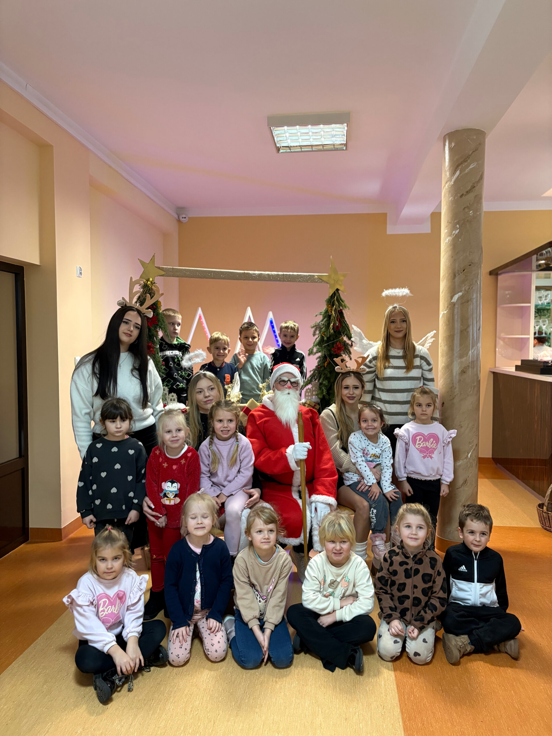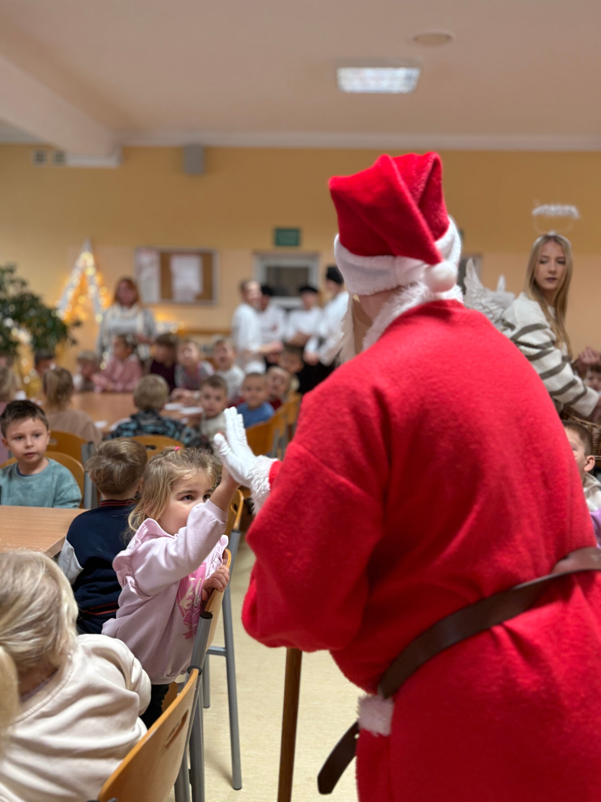 Dzieci ozdabiały ciastka według własnych pomysłów, używając do tego kolorowej polewy i różnego rodzaju posypek. Warsztaty z dekorowania pierników – przygotowanych, w ramach zajęć praktycznych, przez uczniów Technikum w zawodzie technik żywienia i usług gastronomicznych – sprawdziły się świetnie w okresie zbliżających się Świąt Bożego Narodzenia. Ostatnią atrakcją spotkania była wizyta Świętego Mikołaja, który obejrzał udekorowane przez dzieci wypieki, wysłuchał wierszy oraz pięknie zaśpiewanych kolęd.