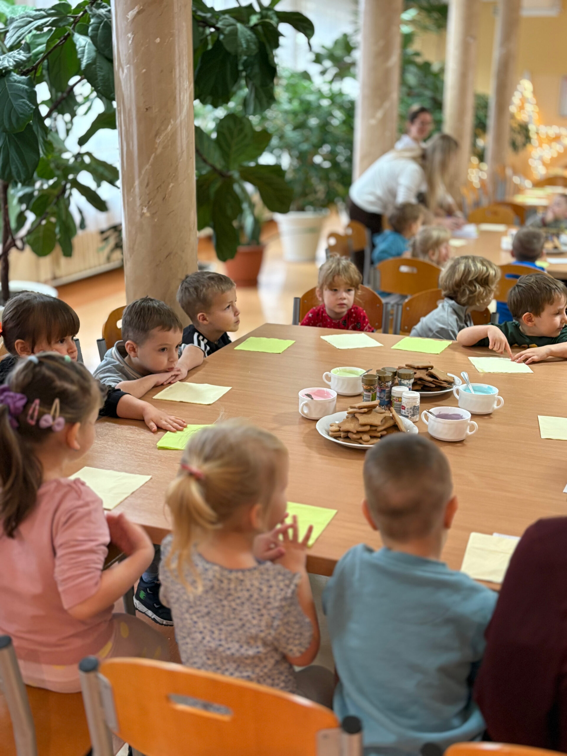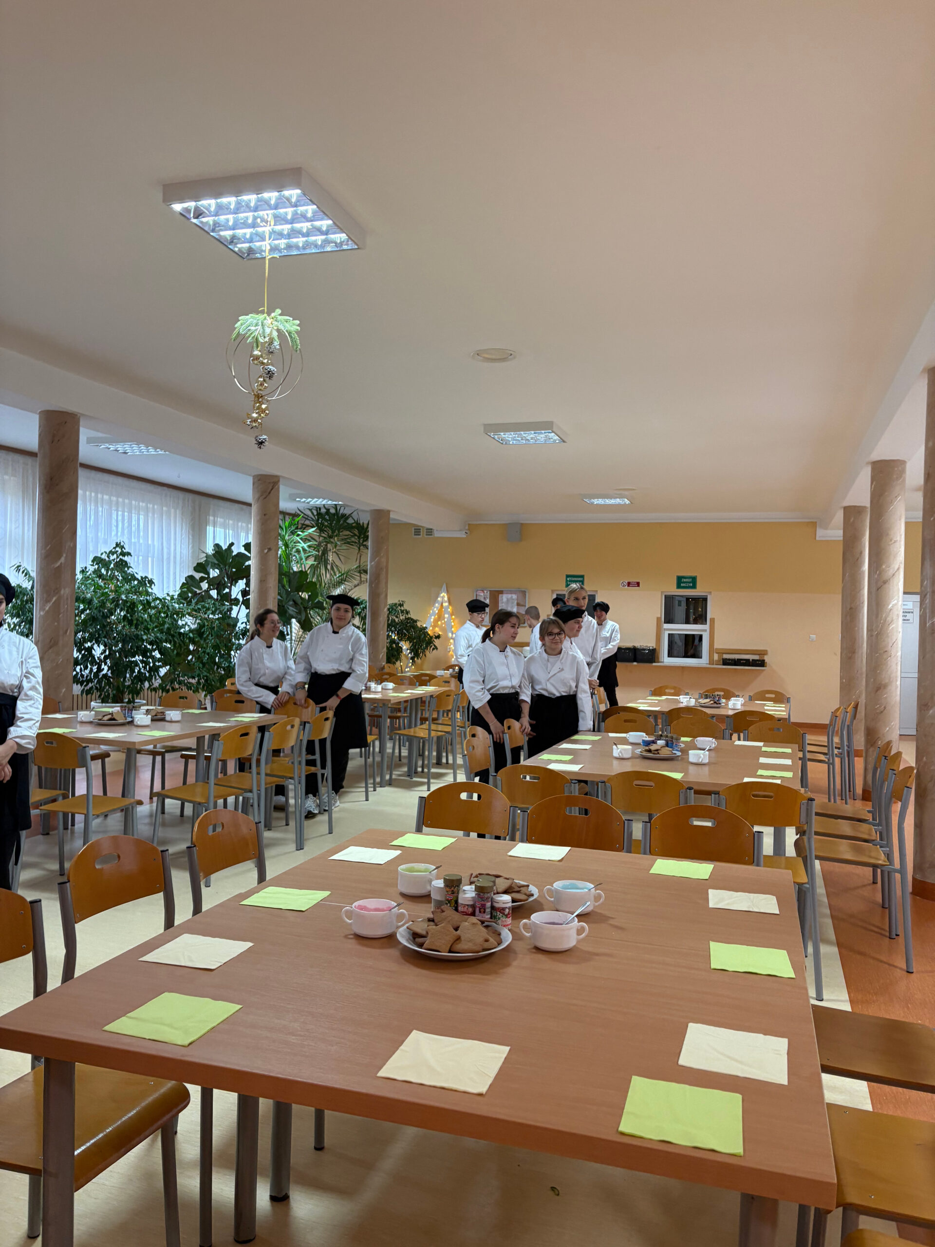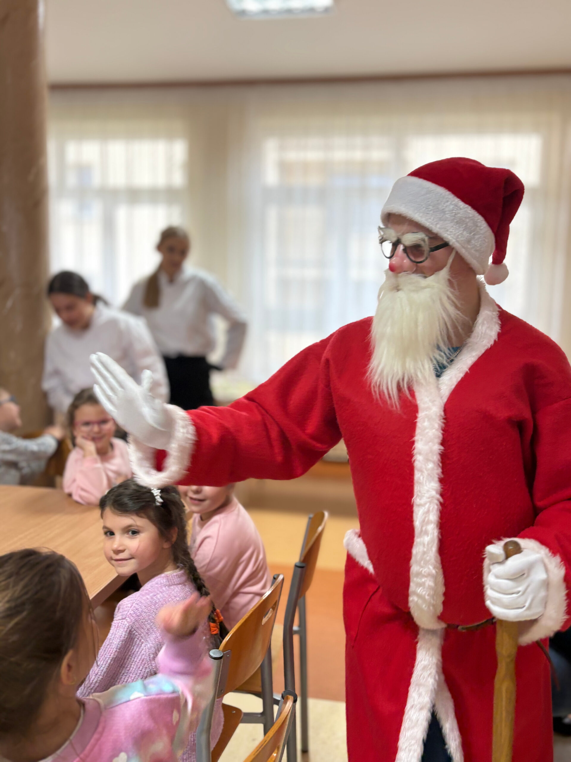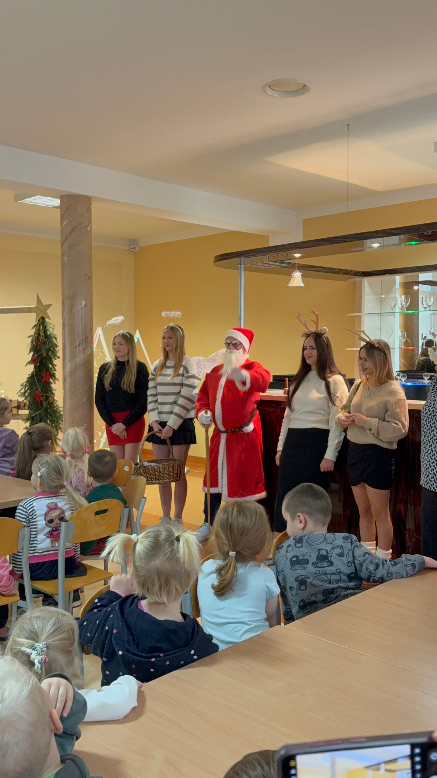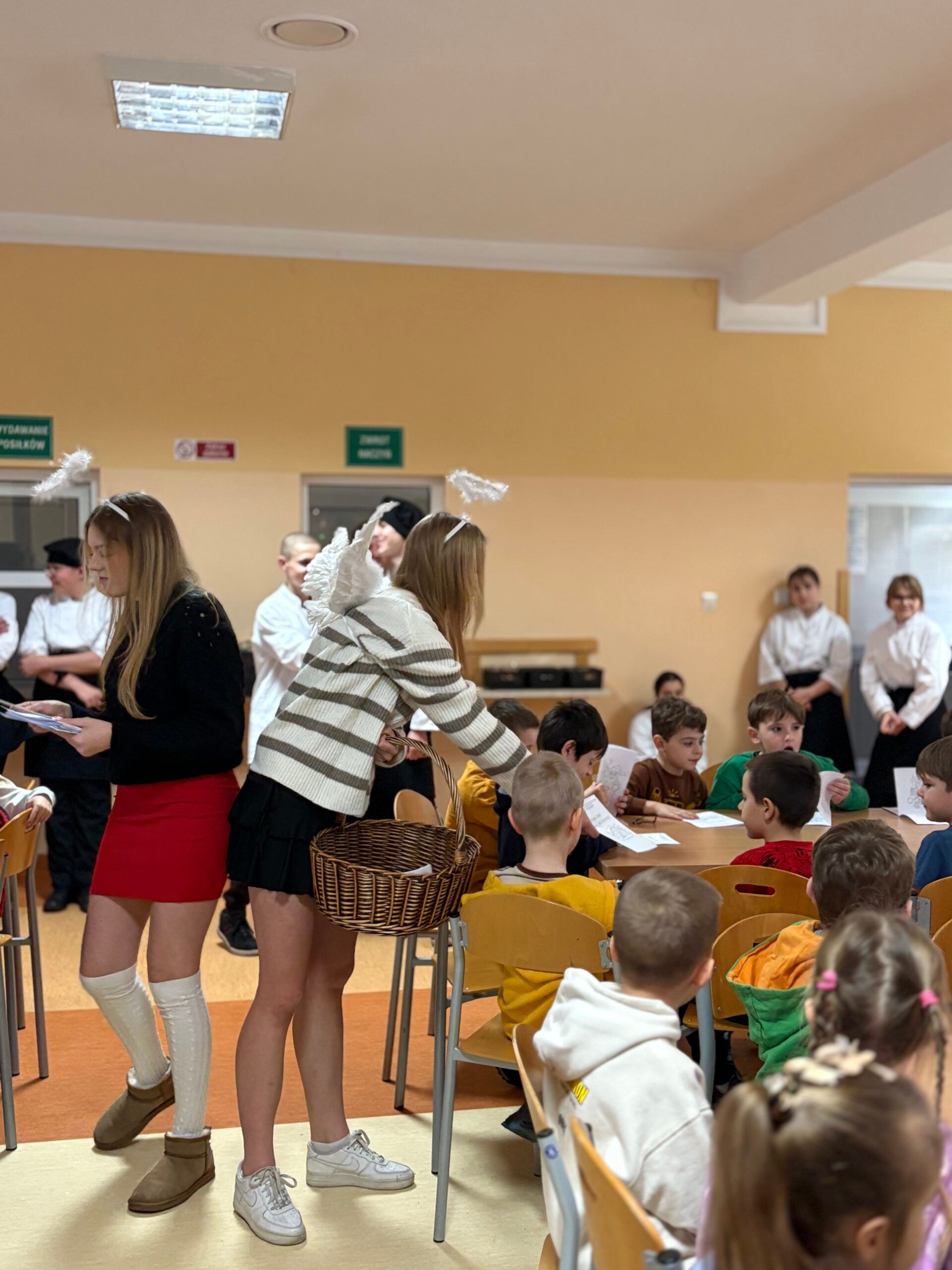 Dzieci ozdabiały ciastka według własnych pomysłów, używając do tego kolorowej polewy i różnego rodzaju posypek. Warsztaty z dekorowania pierników – przygotowanych, w ramach zajęć praktycznych, przez uczniów Technikum w zawodzie technik żywienia i usług gastronomicznych – sprawdziły się świetnie w okresie zbliżających się Świąt Bożego Narodzenia. Ostatnią atrakcją spotkania była wizyta Świętego Mikołaja, który obejrzał udekorowane przez dzieci wypieki, wysłuchał wierszy oraz pięknie zaśpiewanych kolęd.