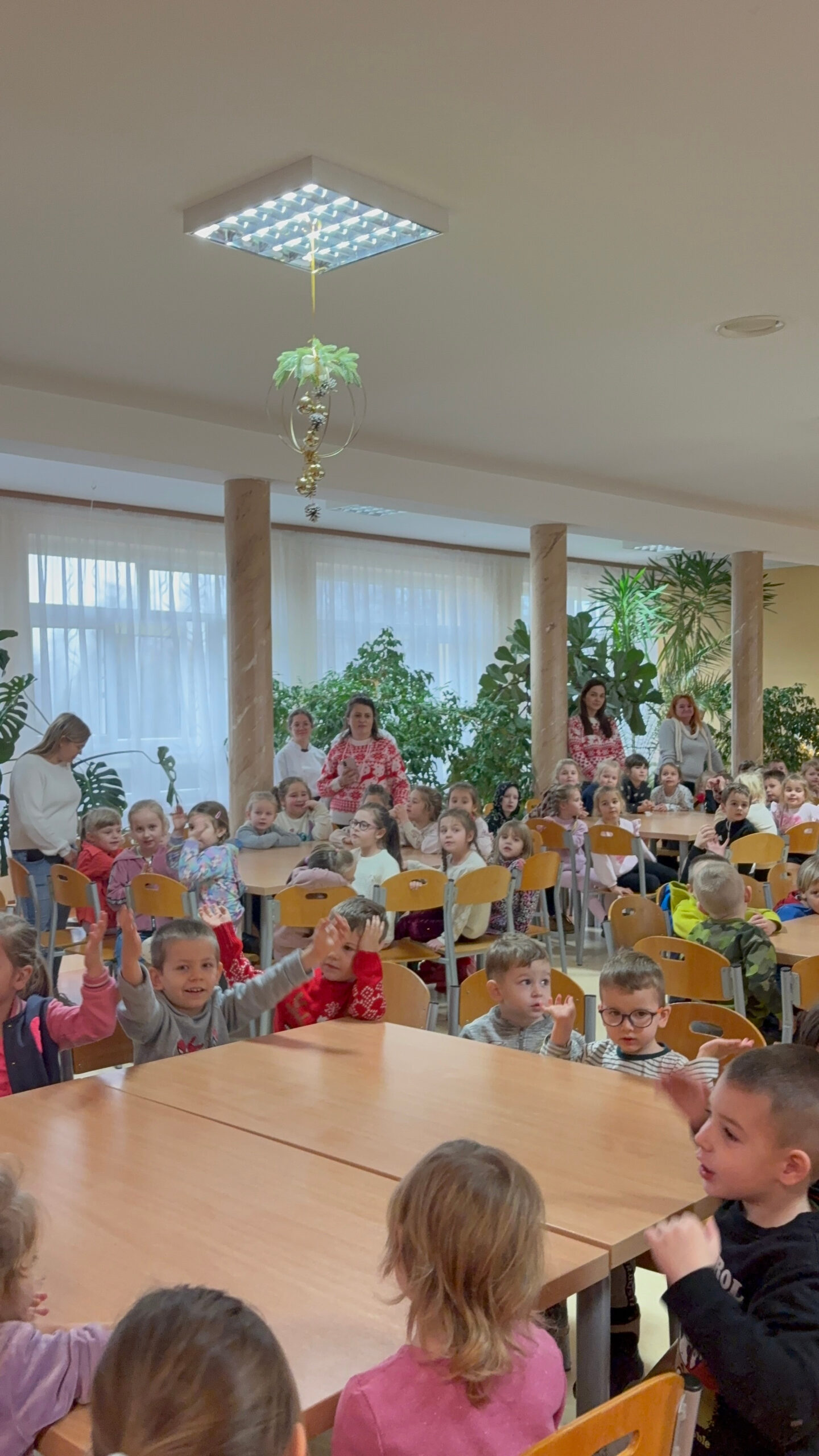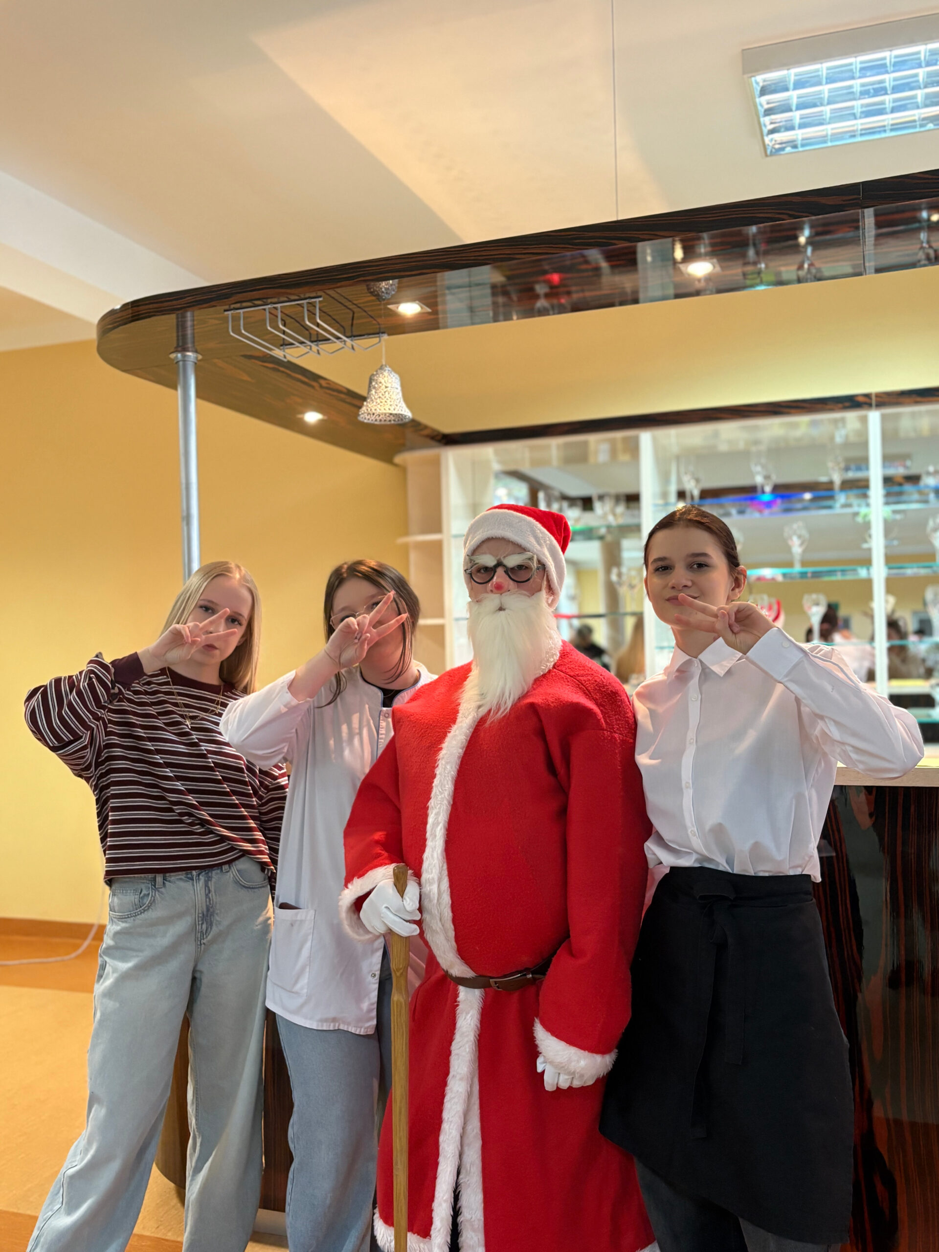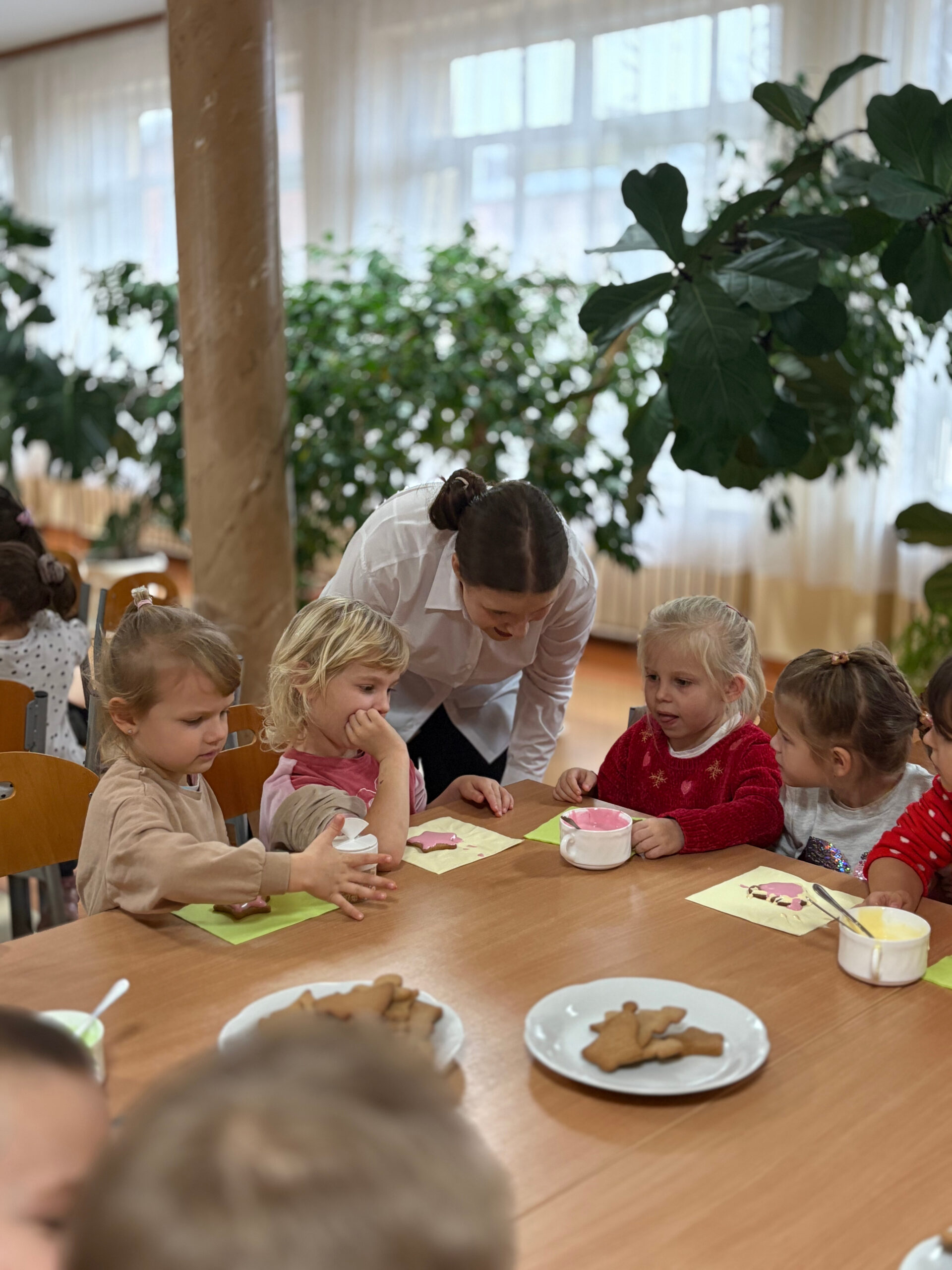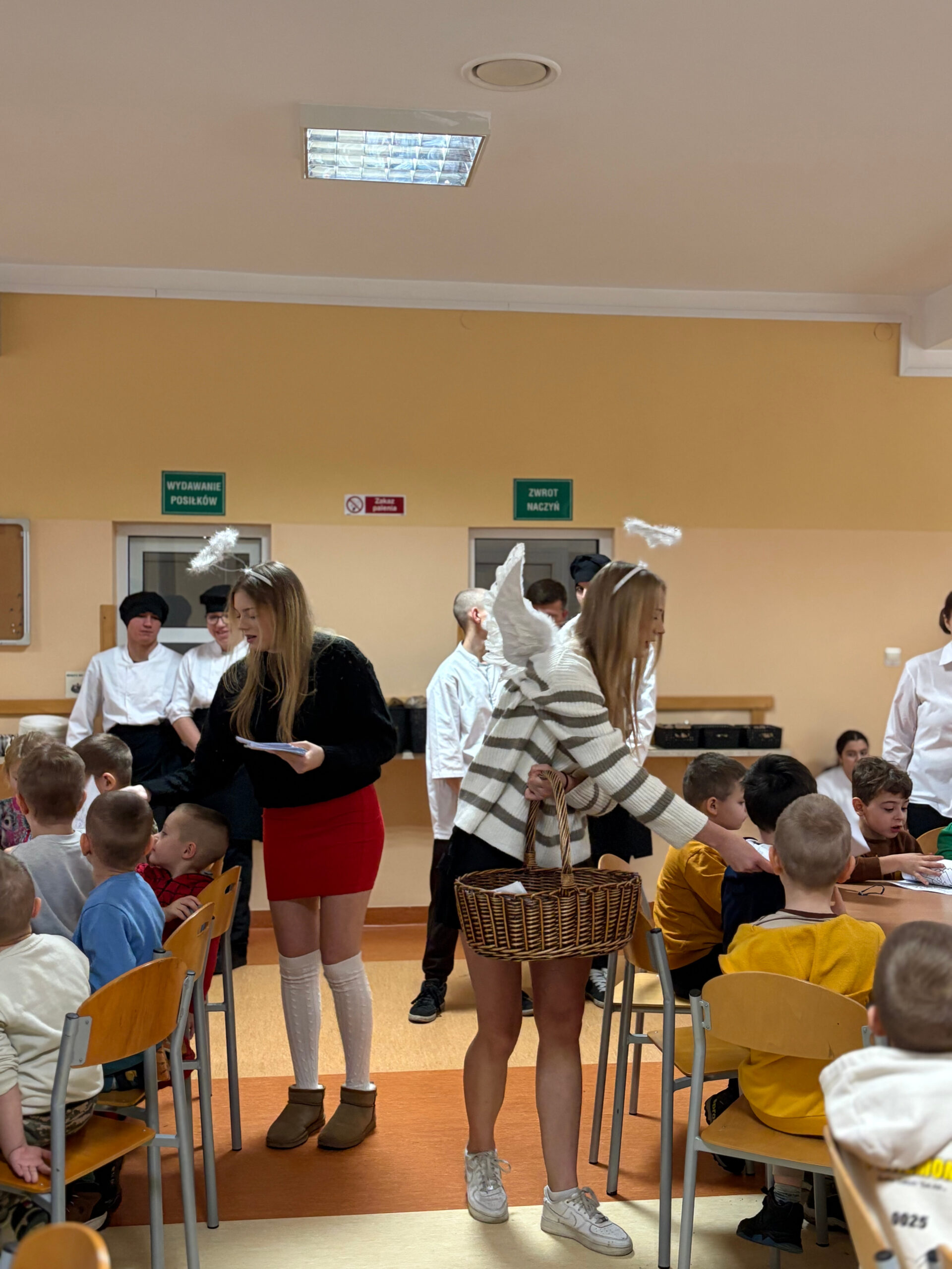 Dzieci ozdabiały ciastka według własnych pomysłów, używając do tego kolorowej polewy i różnego rodzaju posypek. Warsztaty z dekorowania pierników – przygotowanych, w ramach zajęć praktycznych, przez uczniów Technikum w zawodzie technik żywienia i usług gastronomicznych – sprawdziły się świetnie w okresie zbliżających się Świąt Bożego Narodzenia. Ostatnią atrakcją spotkania była wizyta Świętego Mikołaja, który obejrzał udekorowane przez dzieci wypieki, wysłuchał wierszy oraz pięknie zaśpiewanych kolęd.