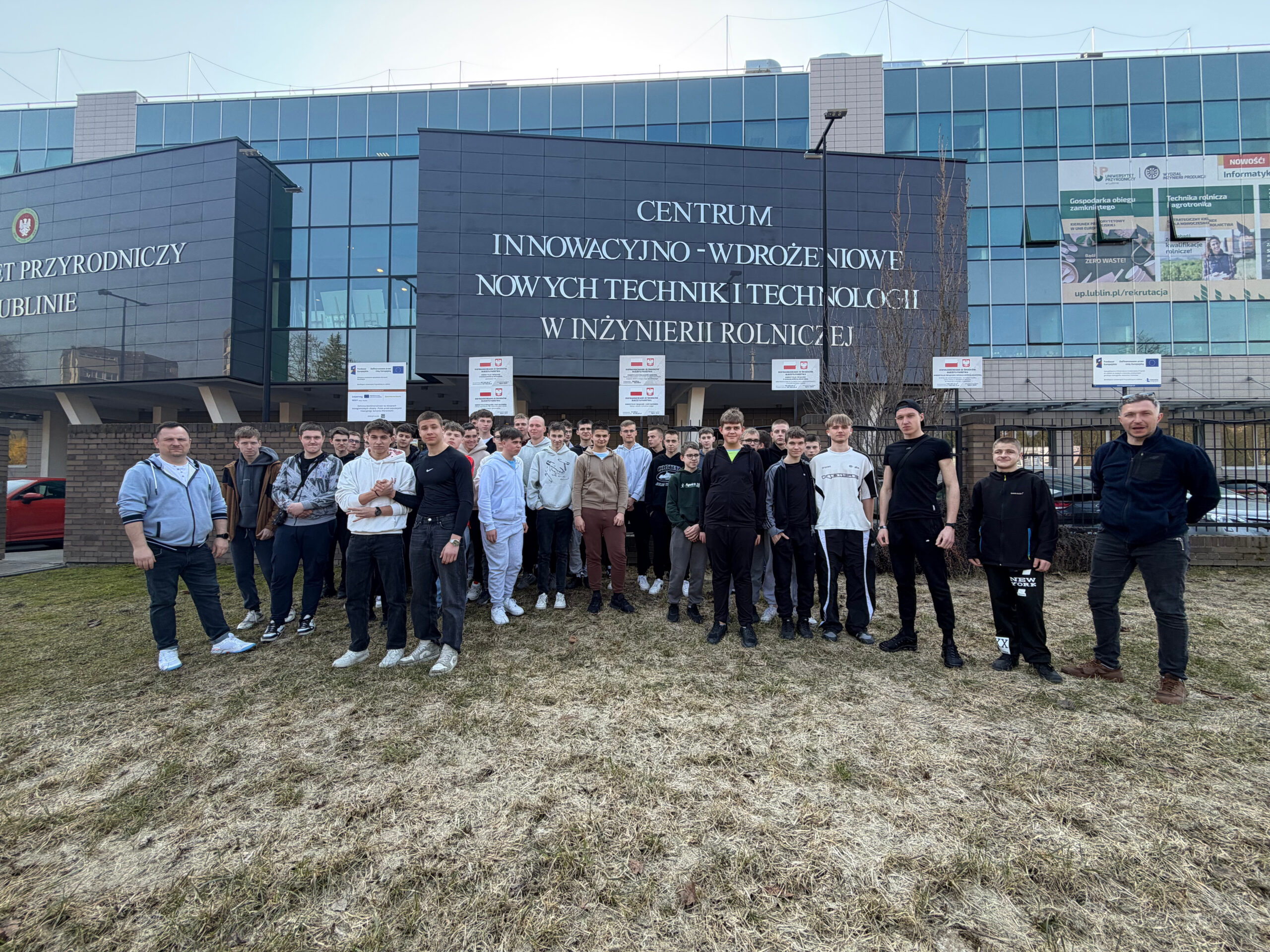 W dniach 12–13 marca 2026 r. grupa młodzieży kształcąca się w zawodzie technik mechanizacji rolnictwa i agrotroniki pod opieką pana Karola Żurkowskiego, pana Bartosza Reducha oraz pani Moniki Kalinki wzięła udział w wyjeździe edukacyjno-integracyjnym, którego głównym celem było zapoznanie się z nowoczesną techniką rolniczą, udział w zajęciach na wydziale Inżynierii Produkcji na Uniwersytecie Przyrodniczym w Lublinie oraz rozwijanie umiejętności pracy zespołowej i rywalizacji sportowej.
