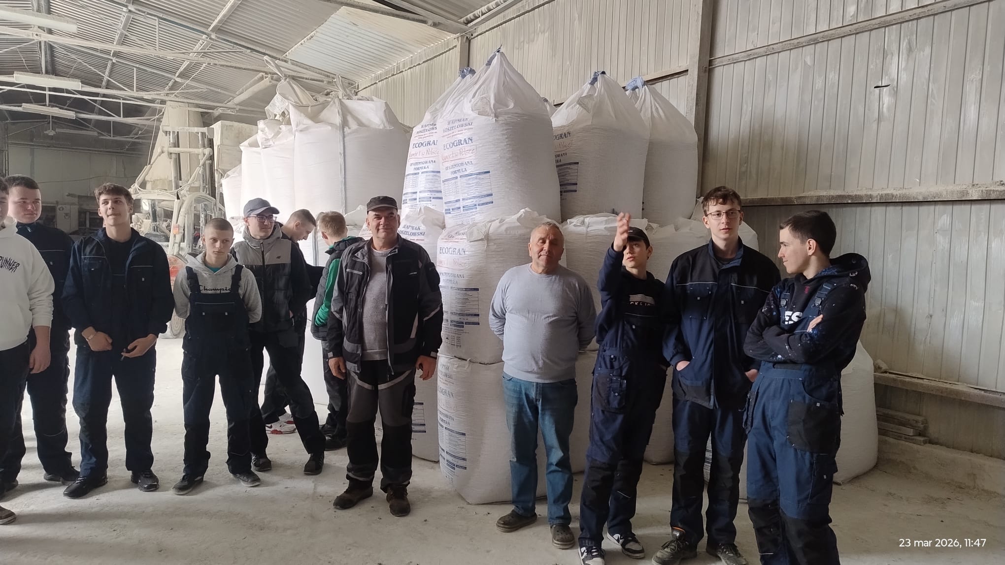 W celu poszerzania wiedzy i utrwalania umiejętności praktycznych, 23 marca 2026 r. uczniowie klas I Technikum w zawodzie technik mechanizacji rolnictwa i agrotroniki wraz z nauczycielami przedmiotów zawodowych, w ramach zajęć praktycznych odwiedzili dwa pobliskie przedsiębiorstwa.